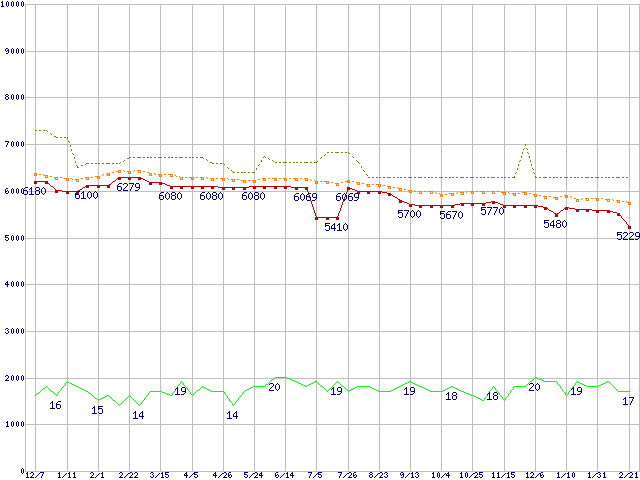 | HDS721616PLAT80 (160GB)の価格推移 | | | (2006年12月7日~2008年2月21日) |