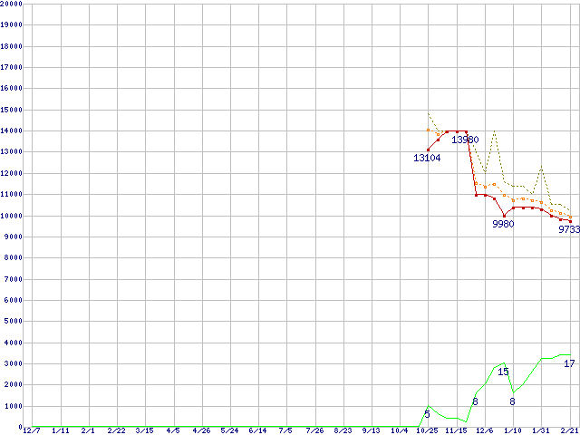 | WD5000AACS (500GB,16MB)の価格推移 | | | (2006年12月7日~2008年2月21日) |