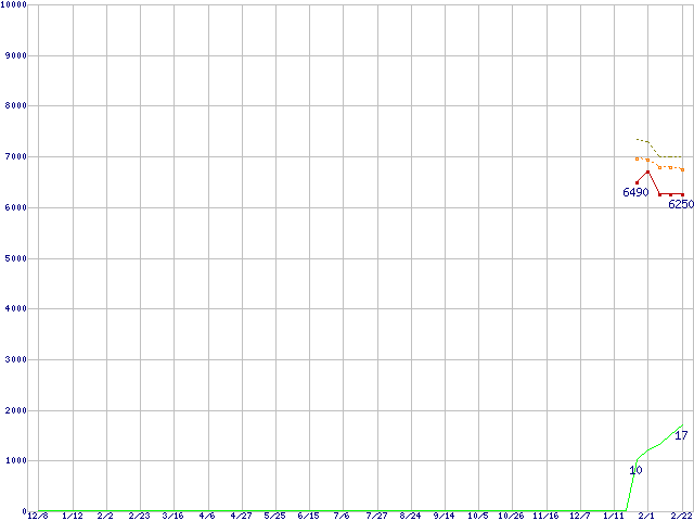 | Celeron Dual-Core E1200 (1.6GHz)の価格推移 | | | (2006年12月8日~2008年2月22日) |