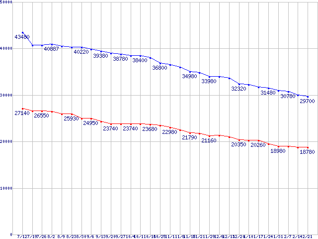Deskstar 7K1000 (7200rpm,SATA 3Gb/s)の最安値推移