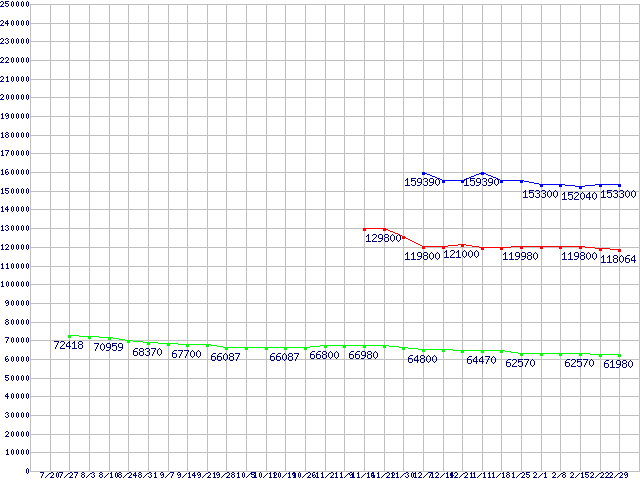 CPU主要製品(最安値3万円~6万円未満)の最安値推移