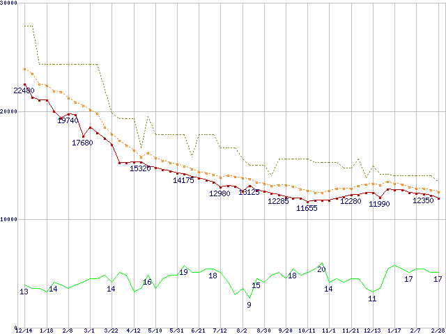 | ST3500630A (500GB,16MB)の価格推移 | | | (2006年12月14日~2008年2月28日) |