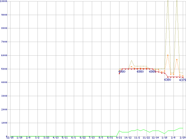 | Sempron LE-1150 (2.0GHz,L2 256KB)の価格推移 | | | (2006年12月15日~2008年2月29日) |