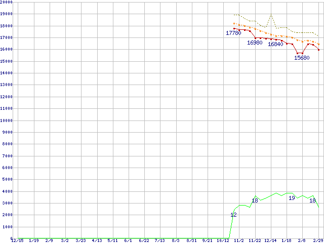 | Core 2 Duo E4600 (2.40GHz,L2 2MB)の価格推移 | | | (2006年12月15日~2008年2月29日) |