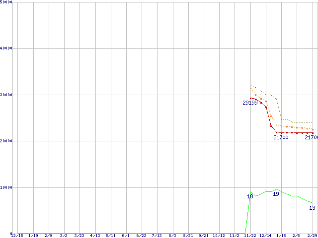 | Phenom 9500 (2.2GHz,L2 512KB×4,L3 2MB)の価格推移 | | | (2006年12月15日~2008年2月29日) |