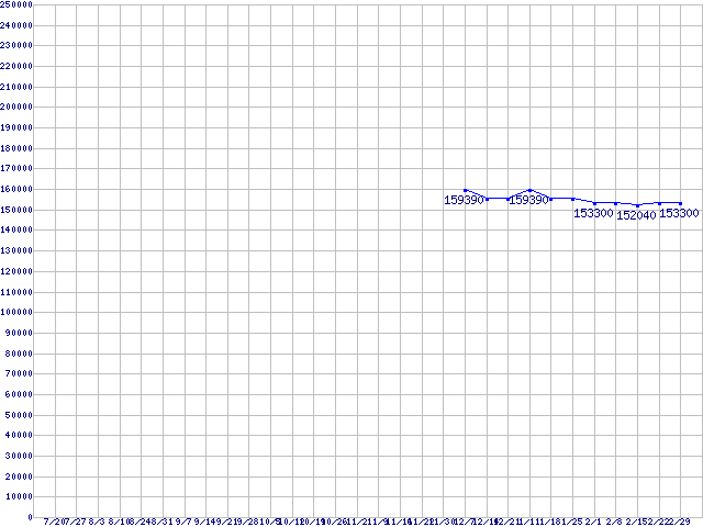 | LGA771(FSB 1333MHz,Quad Core,L2 6MB×2,TDP 120W)の最安値推移 | | | (2007年7月20日~2008年2月29日) |