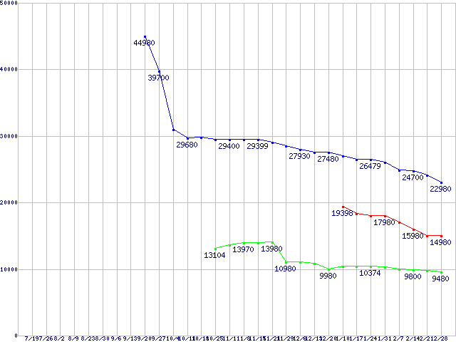 WD Raptor (10000rpm,SATA 1.5Gb/s,16MB,NCQ)の最安値推移