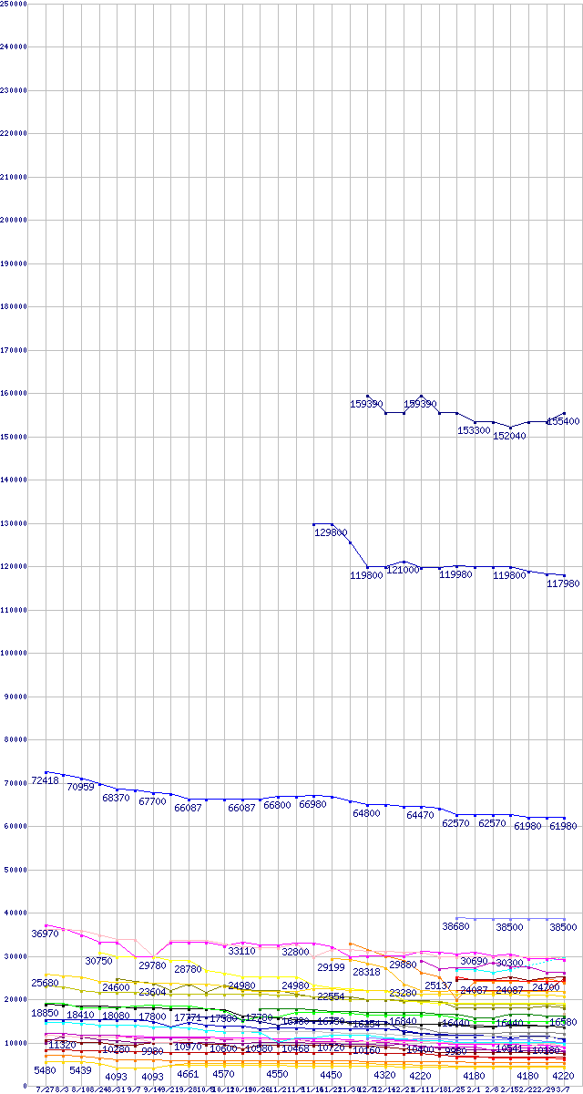 | CPU主要製品の最安値推移 | | | (2007年7月27日~2008年3月7日) |