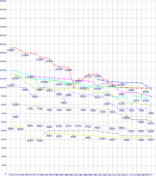 CPU主要製品(最安値1万円~2万円未満)の最安値推移