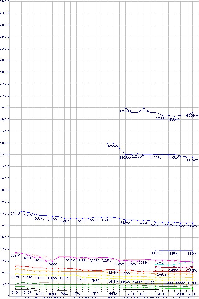 | Intel系CPUの最安値推移 | | | (2007年7月27日~2008年3月7日) |