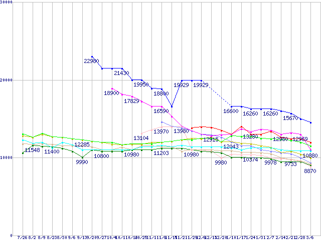 HDD 750GB~1TB未満の最安値推移