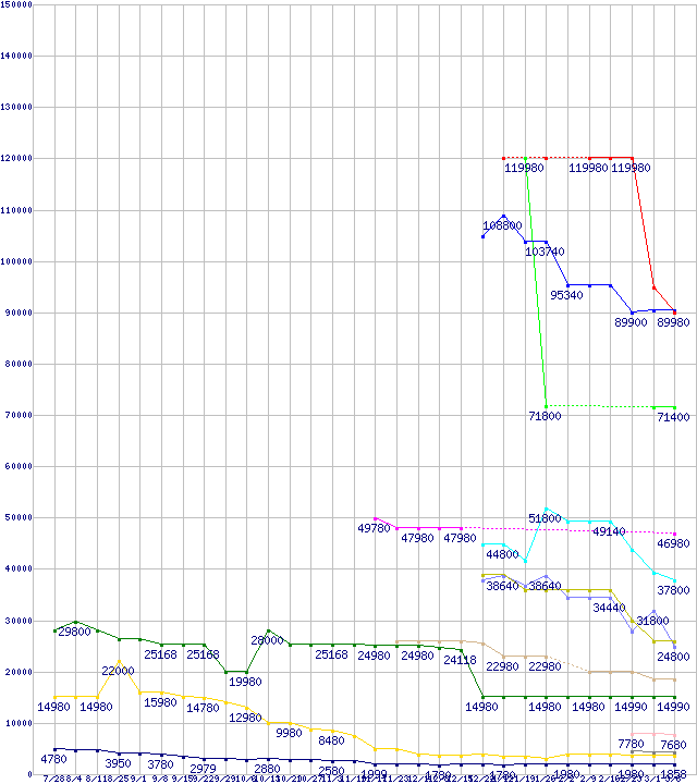 メモリ主要製品の最安値推移