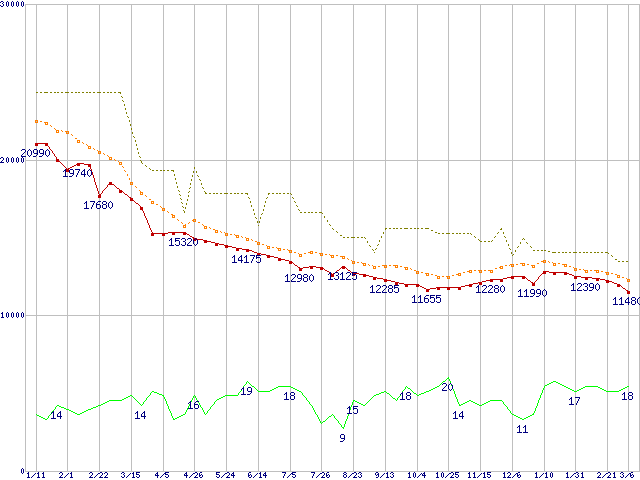 | ST3500630A (500GB,16MB)の価格推移 | | | (2007年1月11日~2008年3月6日) |