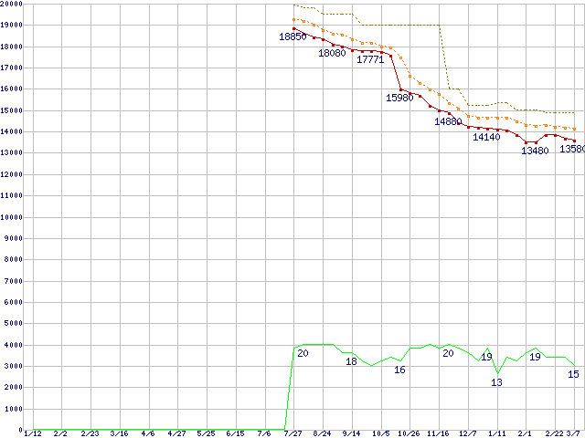 | Core 2 Duo E4500 (2.20GHz,L2 2MB)の価格推移 | | | (2007年1月12日~2008年3月7日) |
