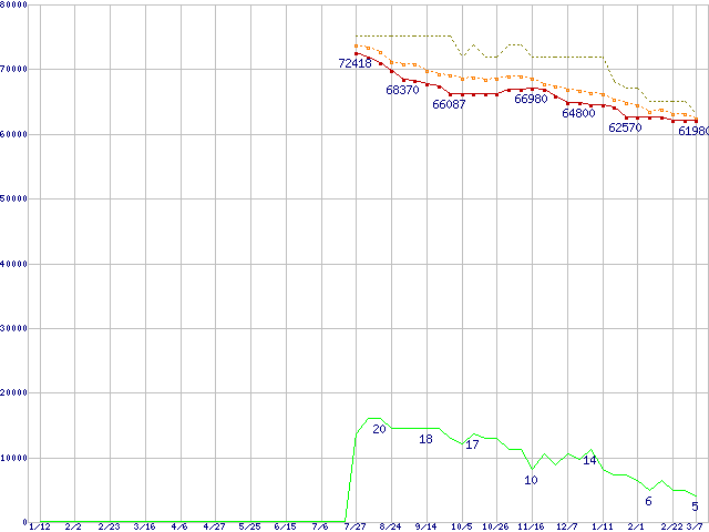 | Core 2 Quad Q6700 (2.66GHz,L2 4MB×2)の価格推移 | | | (2007年1月12日~2008年3月7日) |