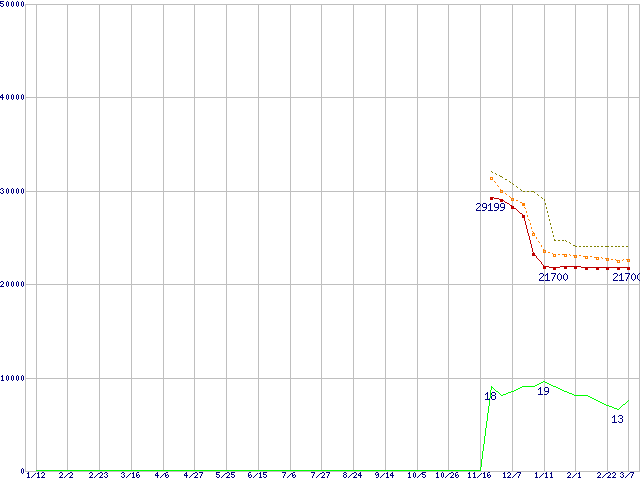 | Phenom 9500 (2.2GHz,L2 512KB×4,L3 2MB)の価格推移 | | | (2007年1月12日~2008年3月7日) |