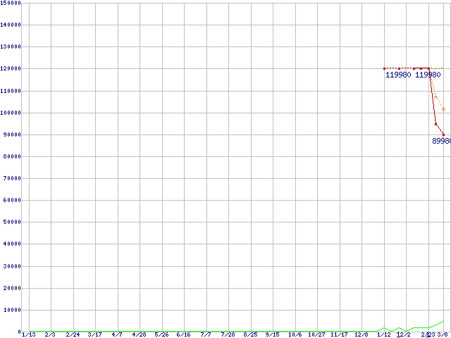 | PC3-8500 2GB×2枚組みパッケージの価格推移 | | | (2007年1月13日~2008年3月8日) |