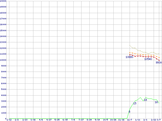 | Pentium Dual-Core E2200 (2.2GHz)の価格推移 | | | (2007年1月12日~2008年3月7日) |