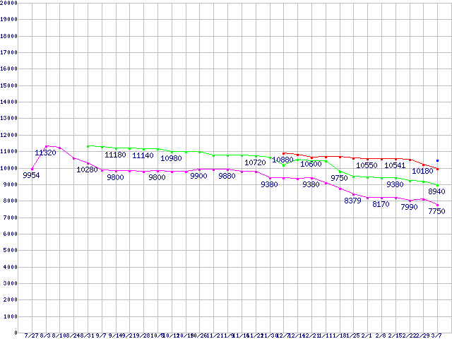 LGA775 (FSB 800MHz,L2 1MB,Dual Core)の最安値推移
