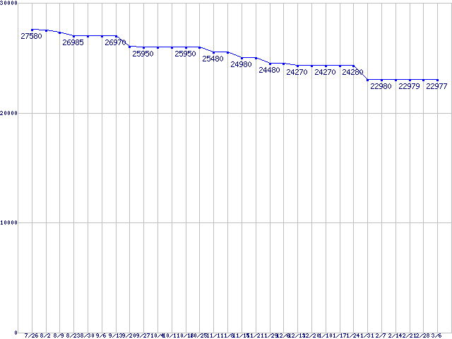 WD Raptor (10000rpm,SATA 1.5Gb/s,16MB,TLER)の最安値推移
