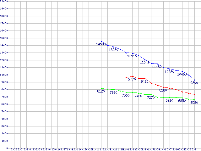 Deskstar 7K1000 (7200rpm,SATA 3Gb/s)の最安値推移