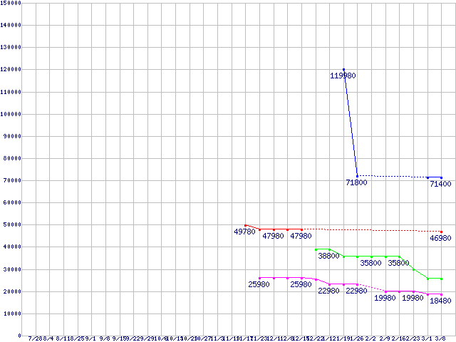 メモリ主要製品の最安値推移