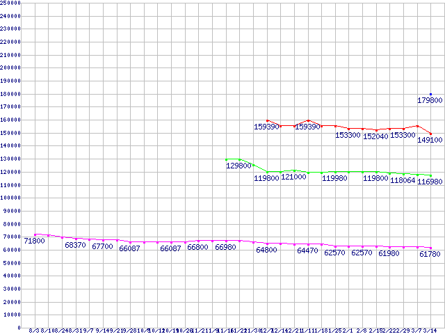 CPU主要製品(最安値3万円~6万円未満)の最安値推移