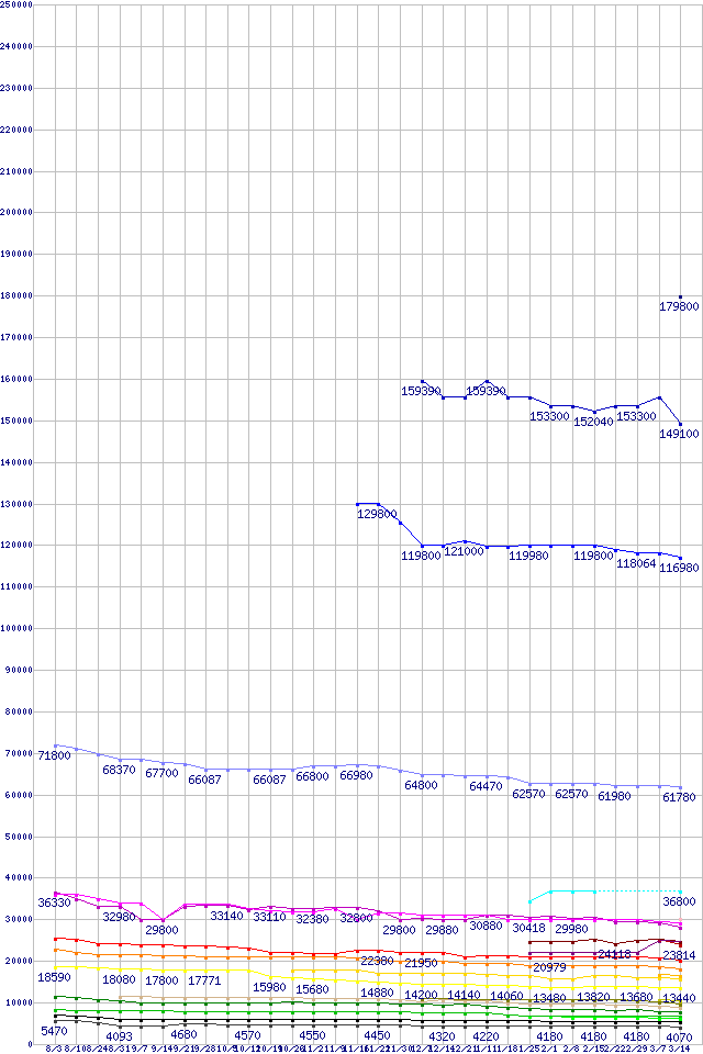 ※製品名をクリックすると個別のグラフを表示します ※点線部は販売店が確認できなかった、または調査データがないことを示します |