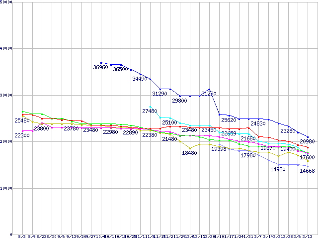 HDD 500~750GB未満の最安値推移