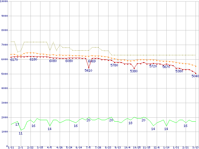 | HDS721616PLA380 (160GB,8MB)の価格推移 | | | (2007年1月11日~2008年3月13日) |