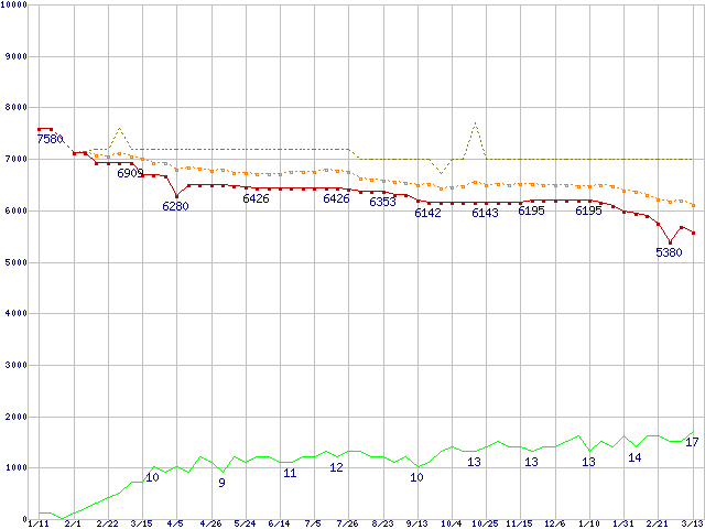 | ST3160815AS (160GB,8MB)の価格推移 | | | (2007年1月11日~2008年3月13日) |