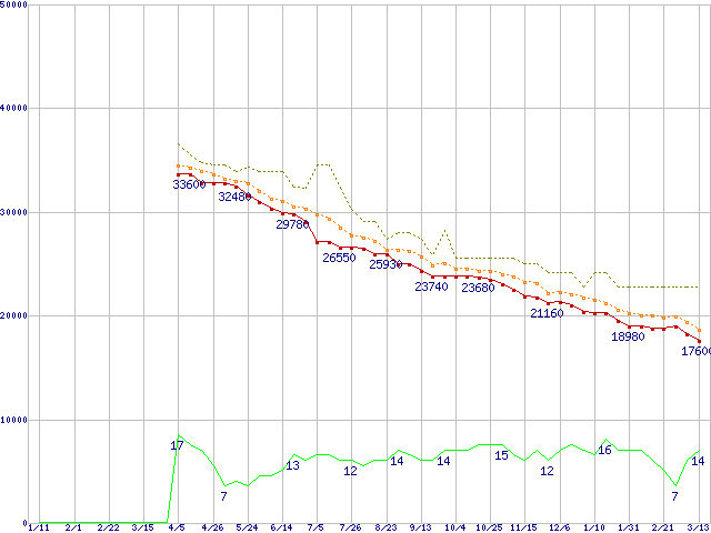 | HDS721075KLA330 (750GB,32MB)の価格推移 | | | (2007年1月11日~2008年3月13日) |
