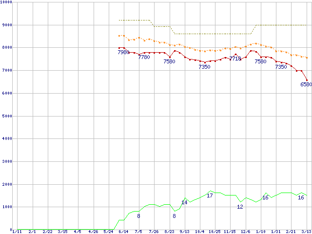| ST3250410AS (250GB,16MB)の価格推移 | | | (2007年1月11日~2008年3月13日) |