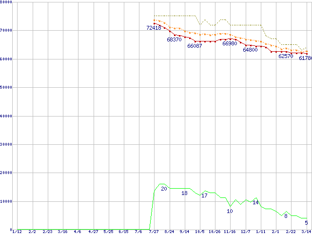 | Core 2 Quad Q6700 (2.66GHz,L2 4MB×2)の価格推移 | | | (2007年1月12日~2008年3月14日) |