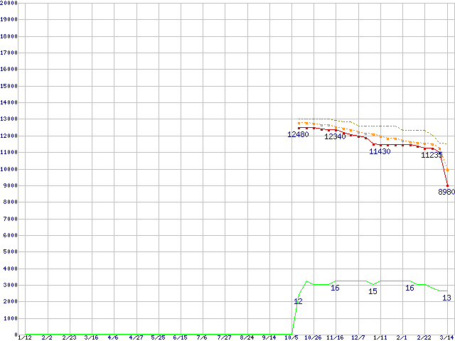 | Athlon X2 BE-2400 (2.3GHz,L2 512KB×2)の価格推移 | | | (2007年1月12日~2008年3月14日) |