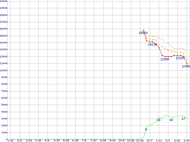 | Athlon 64 X2 5200+ (2.7GHz,L2 512KB×2,TDP65W)の価格推移 | | | (2007年1月12日~2008年3月14日) |