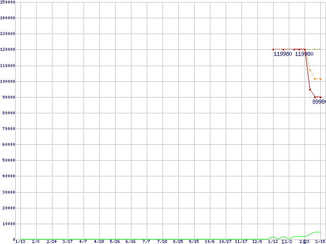 | PC3-8500 2GB×2枚組みパッケージの価格推移 | | | (2007年1月13日~2008年3月15日) |