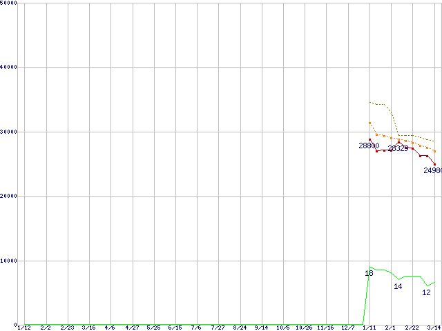 | Phenom 9600 Black Edition (2.3GHz,L2 512KB×4,L3 2MB)の価格推移 | | | (2007年1月12日~2008年3月14日) |