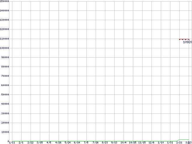 ※このグラフは過去のデータも税率5%相当に調整した税込み相当額のグラフです。 税率変更や、総額表示方式導入(2004年4月)の影響は除いています。 | | | ●凡例 | 最安値 (点線部は販売店未確認 または未調査) | 平均値 | 最高値 | ショップ数 |