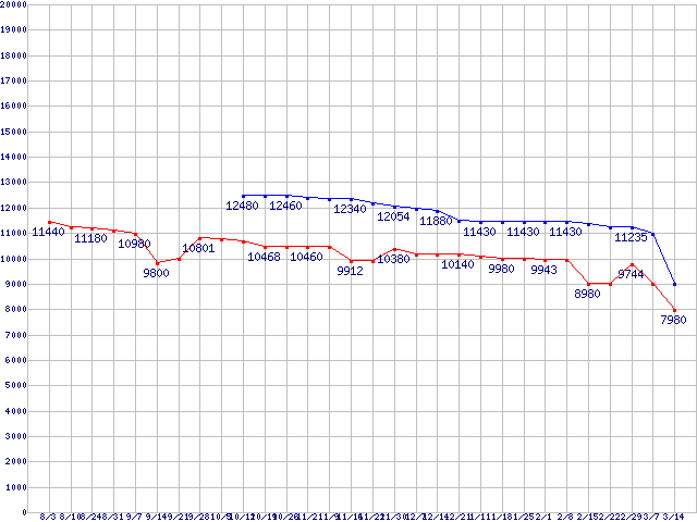 Socket AM2 (HyperTransport,Dual Core)の最安値推移