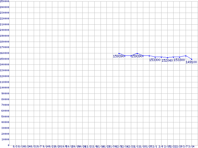 | LGA771(FSB 1333MHz,Quad Core,L2 6MB×2,TDP 120W)の最安値推移 | | | (2007年8月3日~2008年3月14日) |