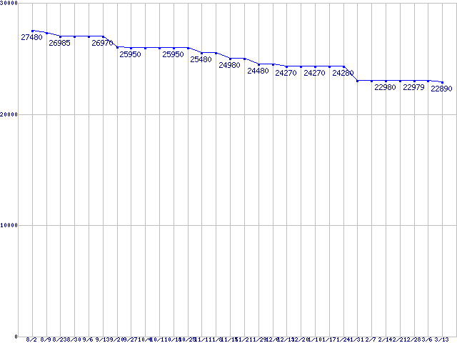 WD Raptor (10000rpm,SATA 1.5Gb/s,16MB,TLER)の最安値推移