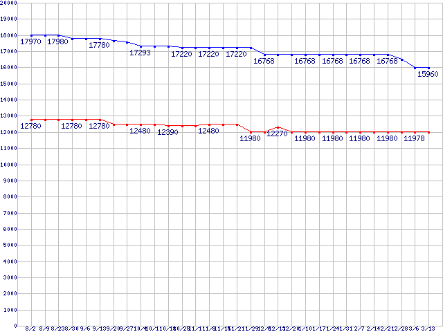 WD Raptor (10000rpm,SATA 1.5Gb/s,16MB,NCQ)の最安値推移