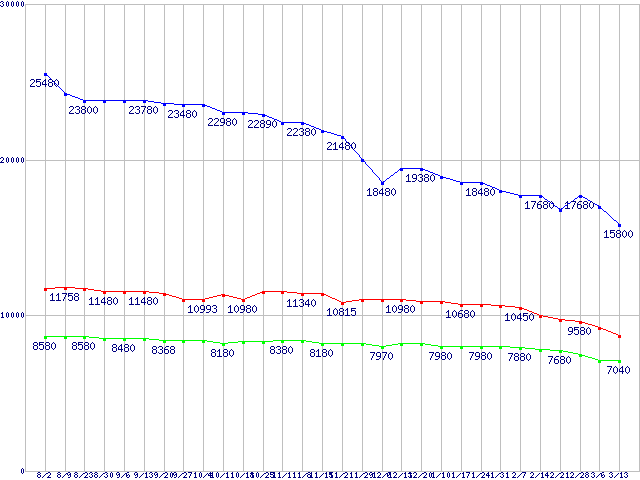 WD Caviar GP (7200rpm,SATA 3Gb/s,16MB)の最安値推移
