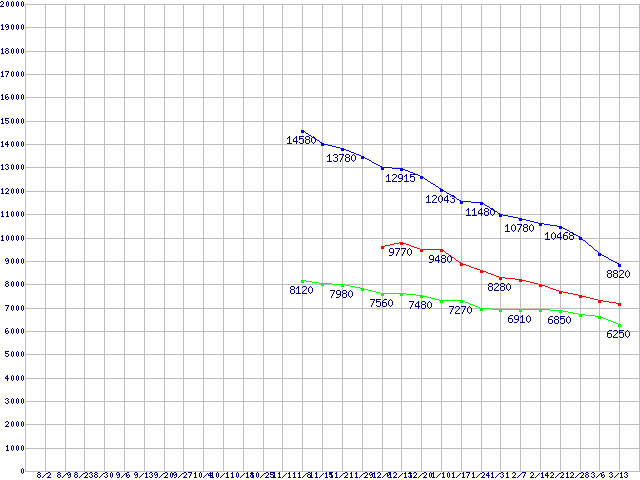 Deskstar 7K1000 (7200rpm,SATA 3Gb/s)の最安値推移
