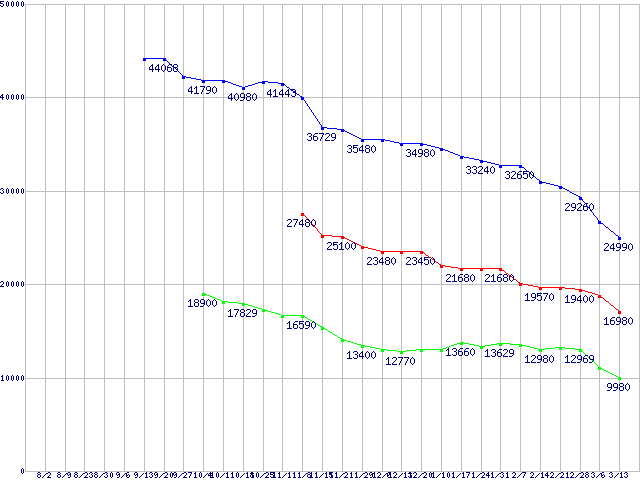 Barracuda 7200.10 (7200rpm,SATA 3Gb/s)の最安値推移