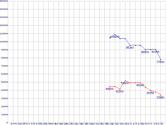 PC2-6400(DDR2-800) DDR2 SDRAM DIMMの最安値推移