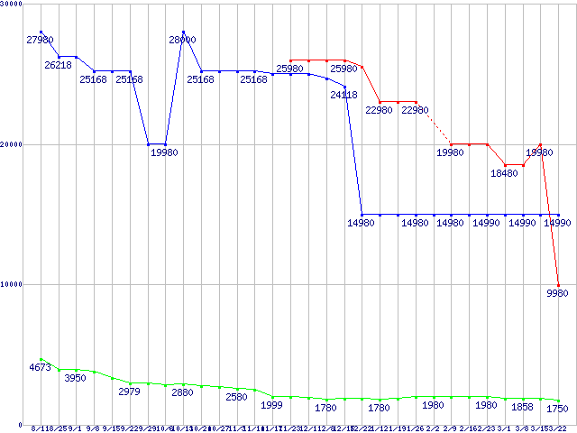 1GBモジュールの最安値推移