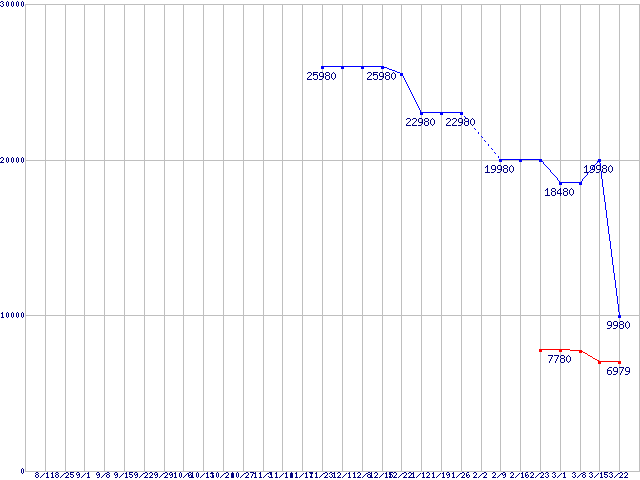 メモリ主要製品(最安値1万円以上)の最安値推移
