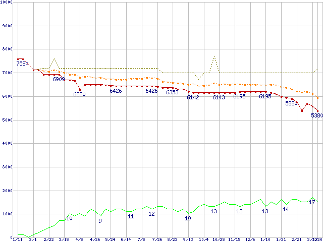| ST3160815AS (160GB,8MB)の価格推移 | | | (2007年1月11日~2008年3月20日) |